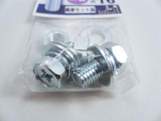 六角アブセットボルトに、ばね座金と平座金が組み込まれています。スパナ、プラスドライバーなどで締め付けることができます。