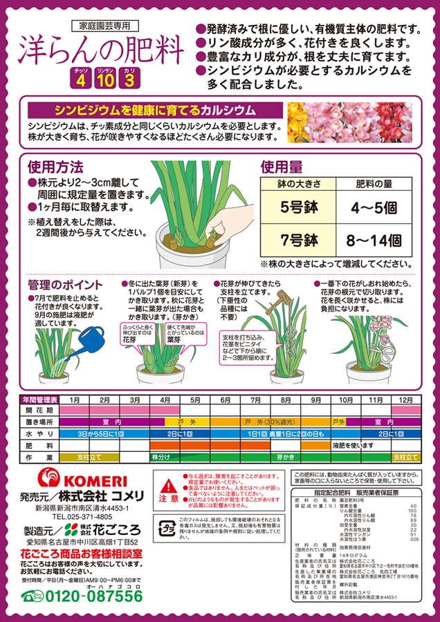●シンビジウムが必要とするカルシウムを多く配合しました。
