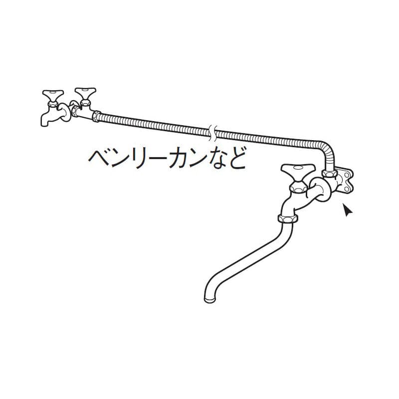 分岐して他へ増設する場合に壁面に固定して水栓を取付ける、座付L型ソケット