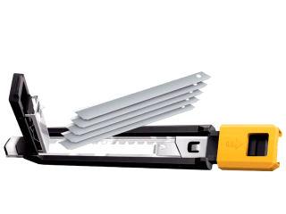 替刃はオルファ独自の裏から入れる方式で簡単にセットできます。オートロック式小型カッター。出荷時は刃2枚内臓。