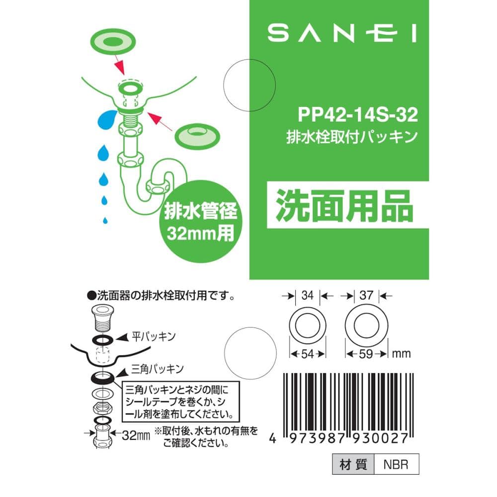洗面排水用品排水管パイプ径32mm用三角パッキン:外径59mm 穴径37mm平パッキン:外径54mm 穴径34mm材質:NBR