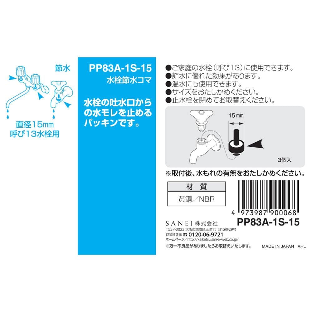 SANEI(サンエイ)水栓節水コマ 直径15mm 呼び13水栓用 3個入り PP83A-1S-15