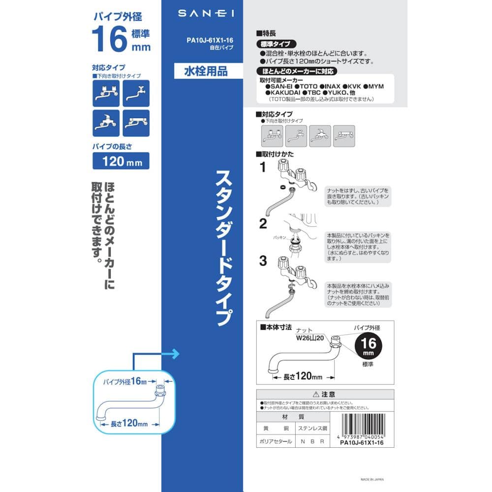 SANEI(サンエイ)自在パイプ 長さ12cm パイプ径16mm PA10J-61X1-16X120