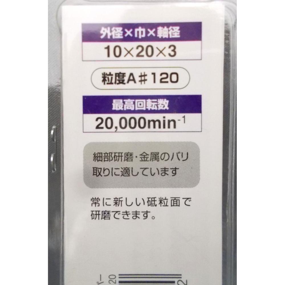 ●砥材:アルミナ ●粒度:#120 ●外径:10mm ●幅:25mm ●軸径:3mm