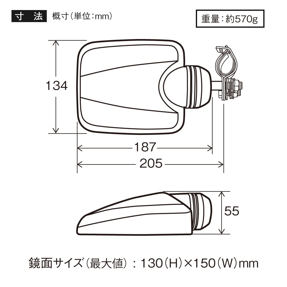 ・鏡面サイズ : 130(H)×150(W)mm