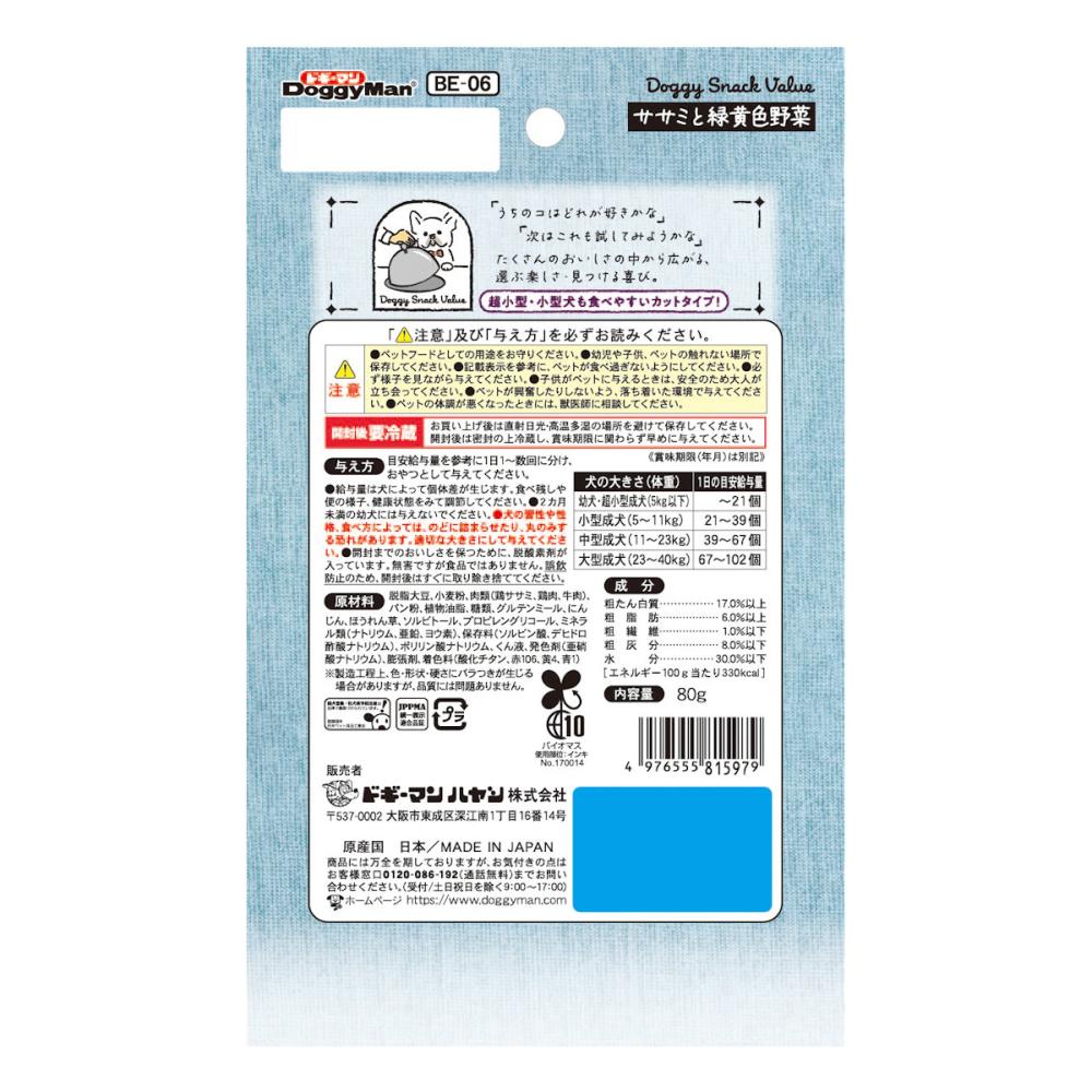 ◎植物性たん白、小麦粉、肉類(鶏ササミ、鶏肉、牛肉)、パン粉、植物性油脂、糖類、グルテンミール、にんじん、ほうれん草、ソルビトール、プロピレングリコール、ミネラル類(ナトリウム、亜鉛、ヨウ素)、食用色素(赤106、黄4、青1、二酸化チタン)、保存料(ソルビン酸、デヒドロ酢酸ナトリウム)、膨張剤、くん液、ポリリン酸ナトリウム、発色剤(亜硝酸ナトリウム)