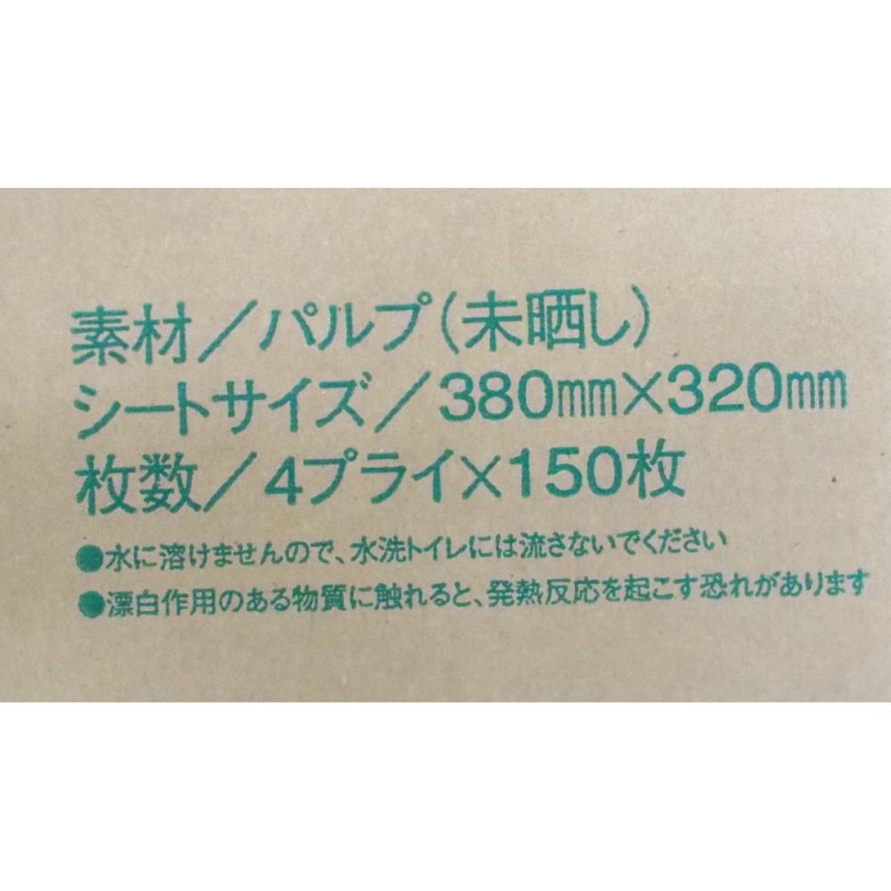 経済的な150枚入り箱単位です。吸水、水拭きなどに最適です。4枚重ねで優れた強度です。