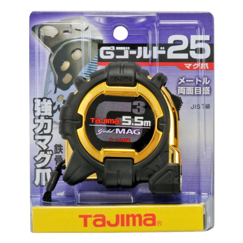 ●目盛仕様:メートル目盛、JIS1級、両面目盛。●テープ幅:25mm。●テープ長さ:5.5m。●ヨンゴーゴーピッチ表示付。●ストラップ、大型ベルトクリップ付。●爪飛び防止用プロテクター付。●フックガードバンパー。●ネオジ磁石(260mT)付爪。●テープ:SK85(旧SK5)。●バネ:SK85(旧SK5)。●ケース:ABS樹脂。