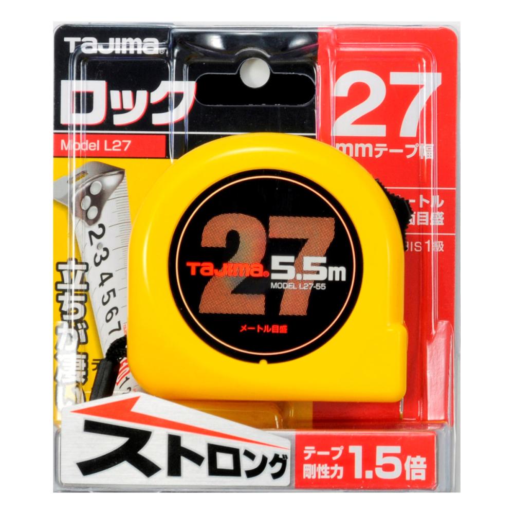 ●目盛仕様:メートル目盛、JIS1級、両面目盛。●テープ幅:27mm、ストロングテープ。●テープ長さ:5.5m。●ヨンゴーゴーピッチ表示付。●ストラップ付。●大型ベルトクリップ付。●爪飛び防止用プロテクター付。●テープ:SK85(旧SK5)。●バネ:SK85(旧SK5)。●ケース:ABS樹脂。