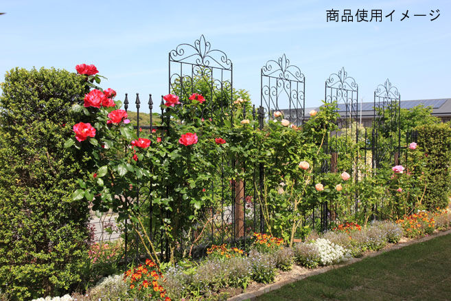 ラウンドトレリスと金具で連結し、目かくしやフェンスとしても。完成品
