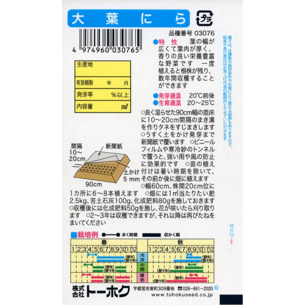 暑さ寒さに強く生育旺盛で再生力高く多収。葉肉厚くやわらかく香りも良い広幅種