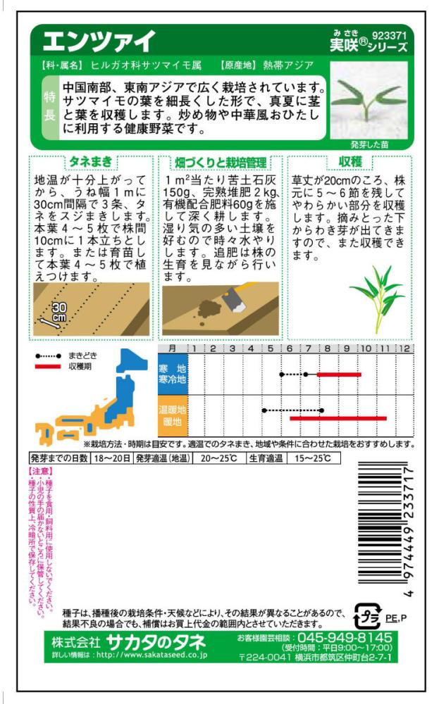 中国南部、東南アジアで広く栽培されています。サツマイモの葉を細長くした形で、真夏に茎と葉を収穫します。炒め物や中華風おひたしに利用する健康野菜です。