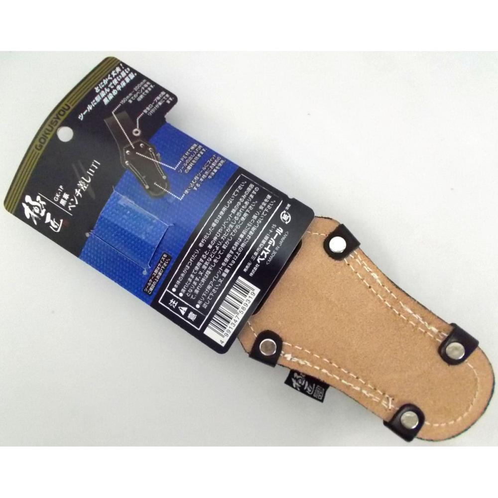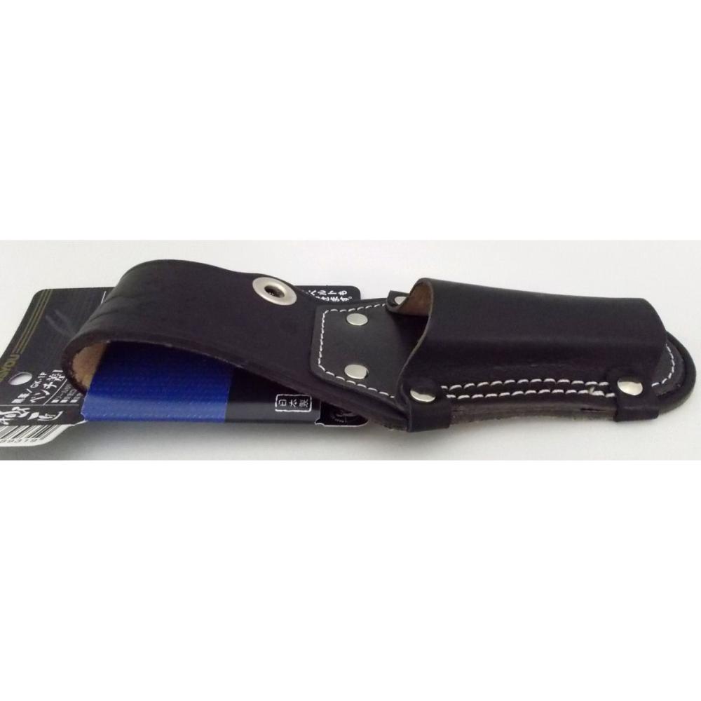 ツールがしっかり収納できるサイズで設計。変色し難い黒革素材を採用。縫製は太目の糸で二重仕上げ、リベット部も耳革を装着して補強も強化済です。