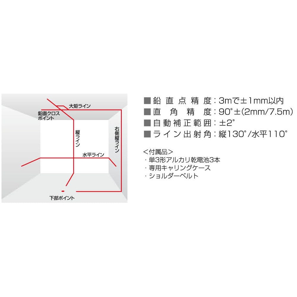 明るい場所でも見やすい高輝度レーザーです。精密な地墨合わせができる360度回転微調整機能付です。本体に直接三脚の取り付けができます。