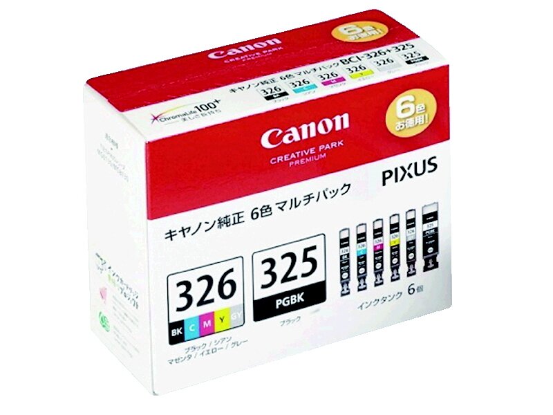 BCI-326 BK/C/M/Y/GYとBCI-325PGBKが各1個ずつ入ったお徳用パック