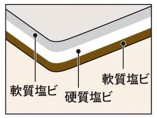 軟・硬・軟のサンドイッチ構造で両面に1cm刻みの便利なグリッド入り。カラーは表麺は目にやさしいソフトグレー、裏面は落ち着いた雰囲気のブラウン。