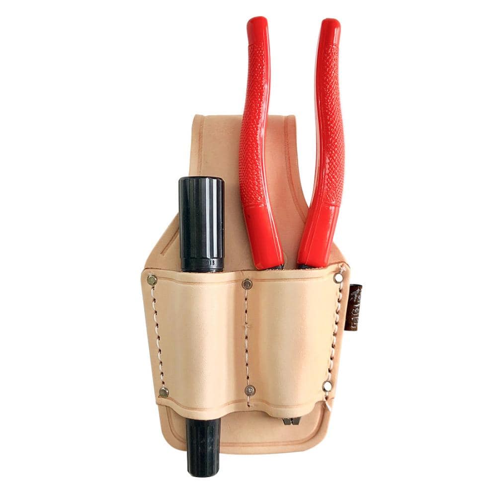 ●耐久性・耐摩擦性に優れ、「ナメシ」仕上げを施したヌメ革仕様 ●175mmまでのペンチを収納可能なヌメ革工具差しです。 ●ペンチはもちろん、ニッパー・LEDマグライト・ホビーツールなども収納可能 ●長時間の使用により一層の艶が出て、使い込むほどツールにフィットするので、本格派にお勧めです。