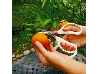 園芸用・農作物・家庭菜園用鋏。 抜群の切れ味と使いやすさを両立した鋏です。 手に直接触れる部分には軟質樹脂を使用しています。 刃の表面にはハードクロームをコーテイングし、ヤニがつきにくく、サビを防ぎます。 テコの原理を応用するデザインで、刃先までしっかり力を伝え、小さな力でもシャープな切れ味を発揮します。