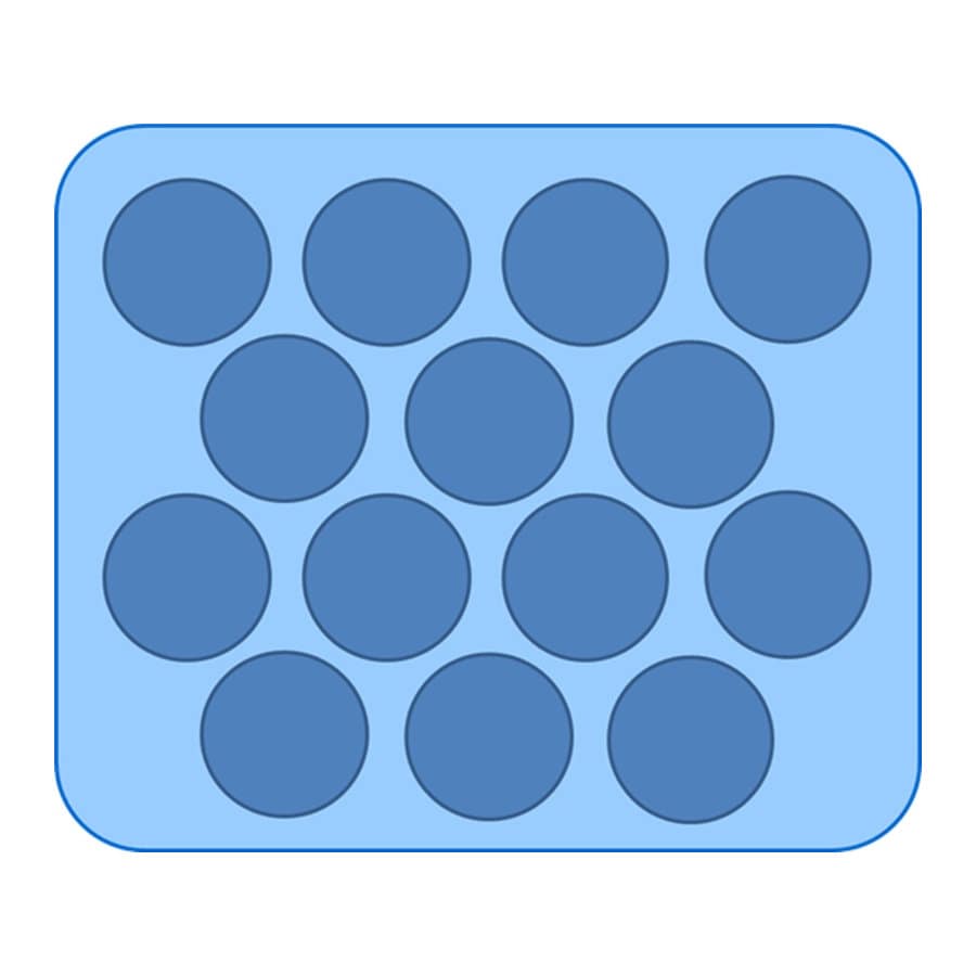 各品種の適性量目をカバーし、玉回りやオセによるキズを防ぎます。 規格:14穴