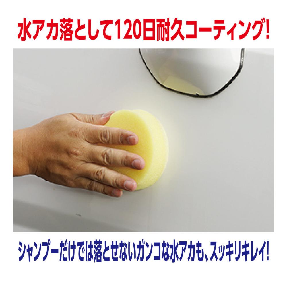 同時に強力なワックス被膜を形成し、水ハジキ効果が120日間持続※。