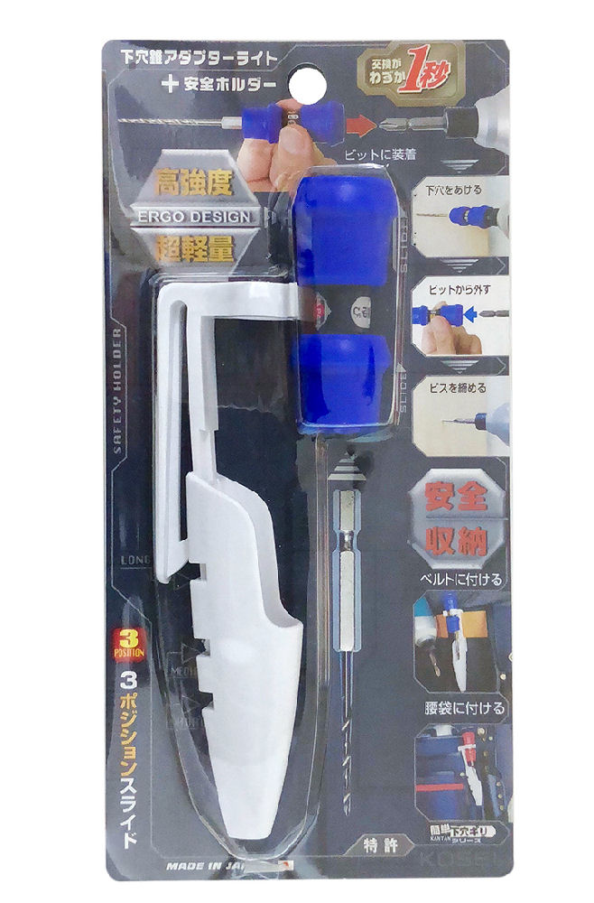 交換がわずか1秒!下穴をあける。ビットから外す⇒ビスを締める。 安全ホルダーも取付けるドリルの長さに応じて3ポジションスライドできます。