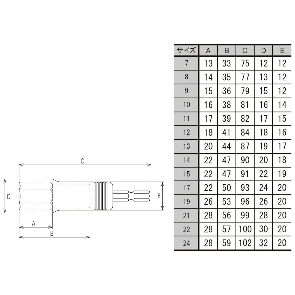 ●呼び寸法:10(6角)。●全長:81mm。●深さ寸法:38mm。●製品重量:54g。●本体:クロームバナジウム鋼。