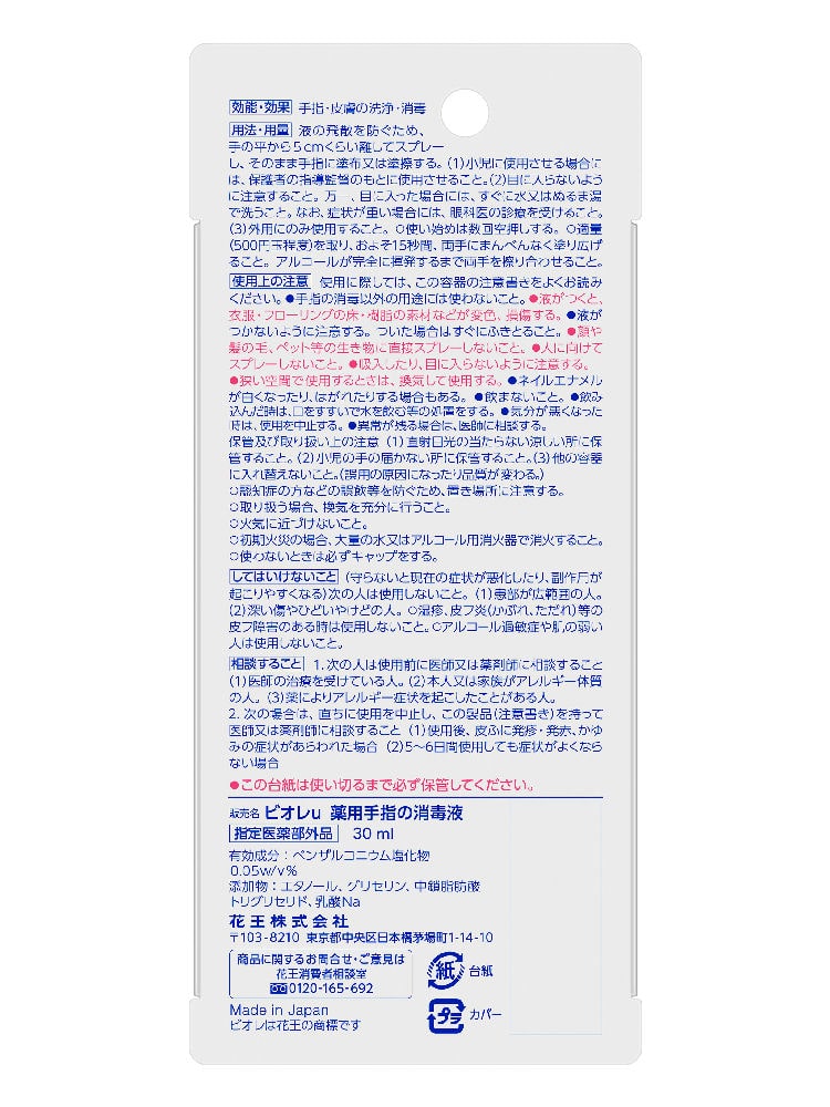 使用上の注意:使用に際しては、容器の注意書きをよくお読みください。●手指の消毒以外の用途には使わないこと。●液がつくと、衣服・フローリングの床・樹脂の素材などが変色、損傷する。●液がつかないように注意する。ついた場合はすぐにふきとること。●顔や髪の毛、ペット等の生き物に直接スプレーしないこと。●人に向けてスプレーしないこと。●吸入したり、目に入らないように注意する。●狭い空間で使用するときは、換気して使用する。●ネイルエナメルが白くなったり、はがれたりする場合もある。●飲まないこと。●飲み込んだ時は、口をすすいで水を飲む等の処置をする。●気分が悪くなった時は、使用を中止する。●異常が残る場合は、医師に相談する。