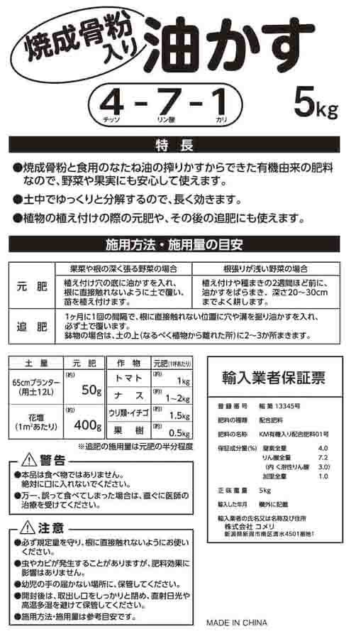 ●焼成骨粉と食用のなたね油の搾りかすからできた有機肥料なので、野菜や果物にも安心して使えます。