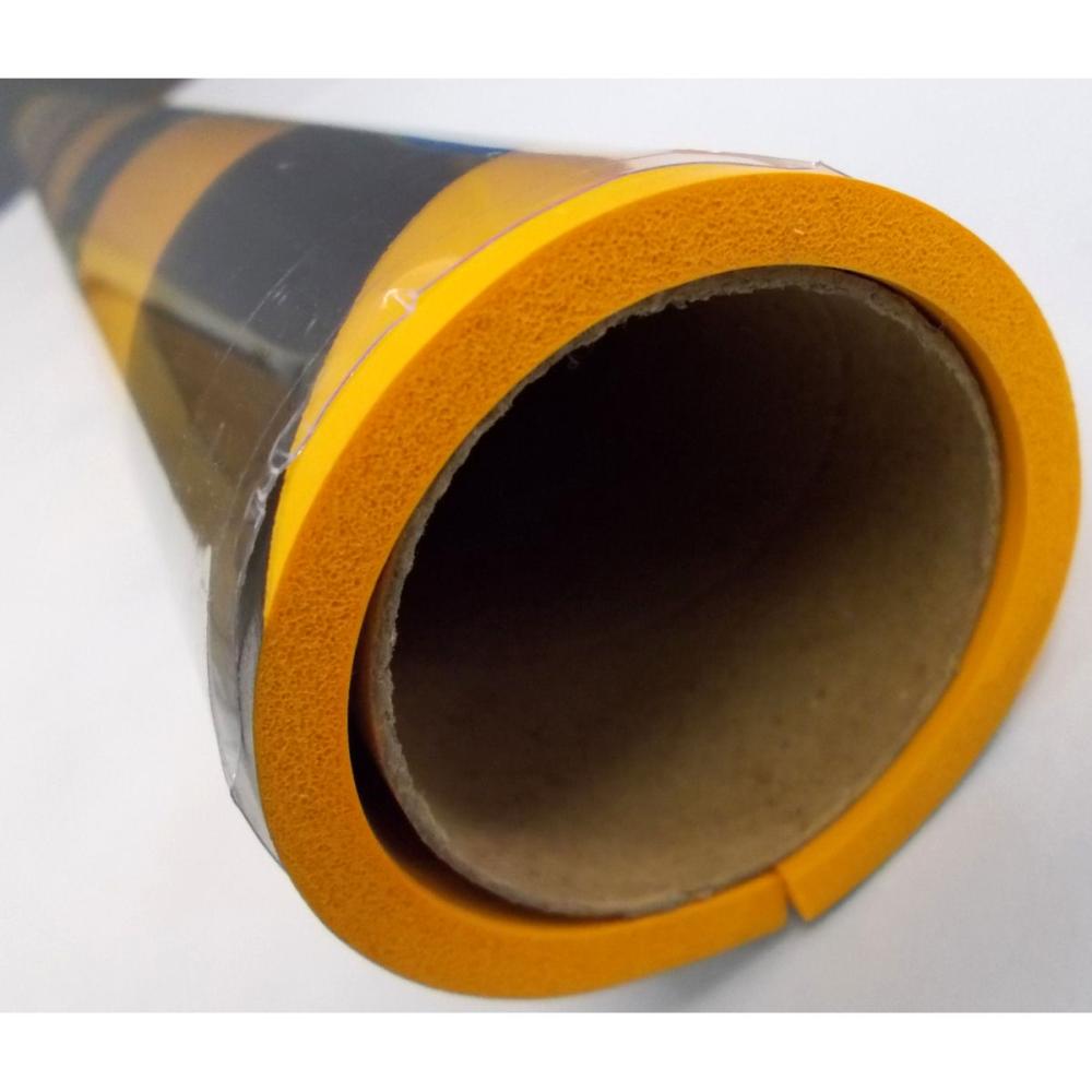 円柱やパイプに取り付けられる丸形形状のクッション材です。トラ柄なので注意喚起とブツカリの安全対策に最適です。