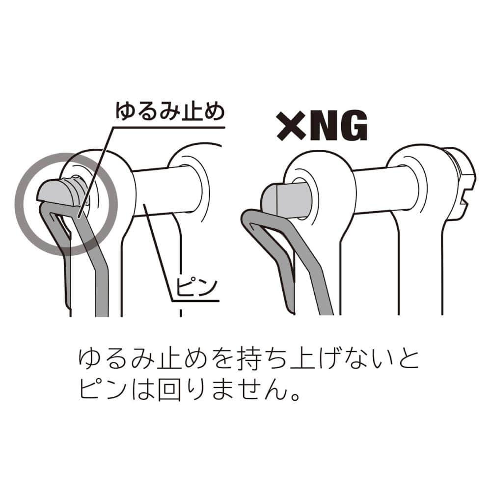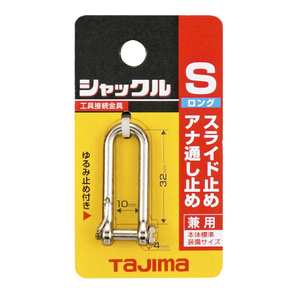 タジマ独自のゆるみ止め機構付です。幅8mm未満、穴径4mm以上の工具が接続できます。アナ通し止め、スライド止めの2通りが可能です。スマートザイルジャバラ式標準装備品です。