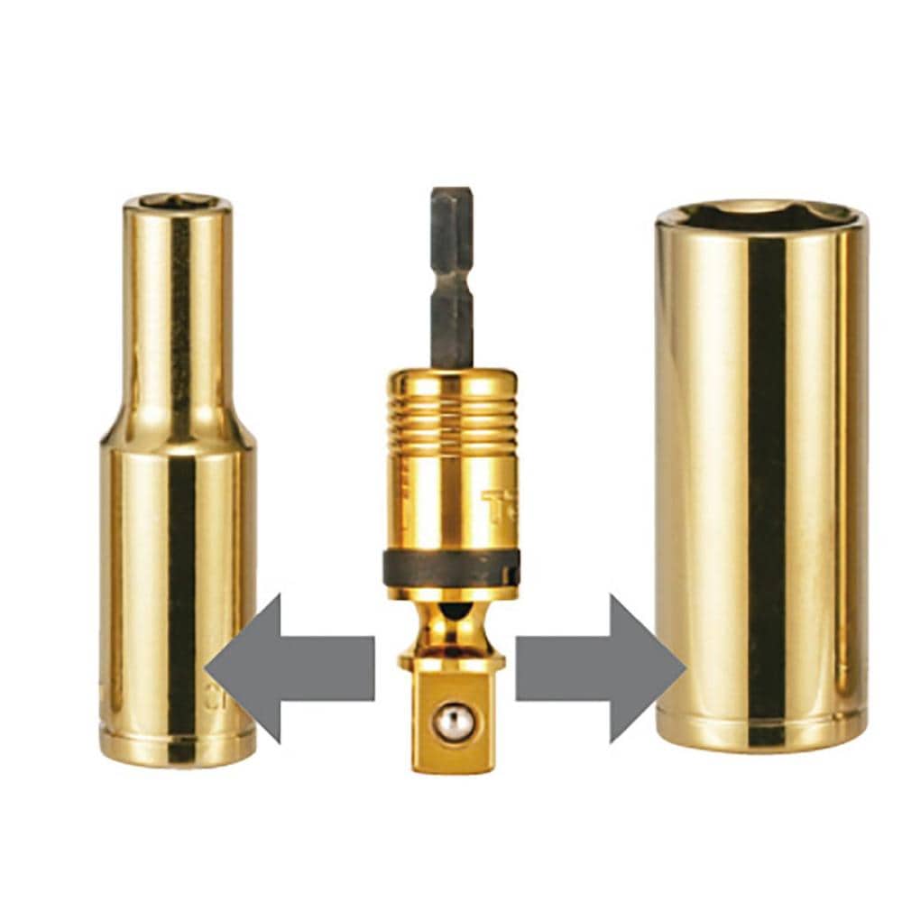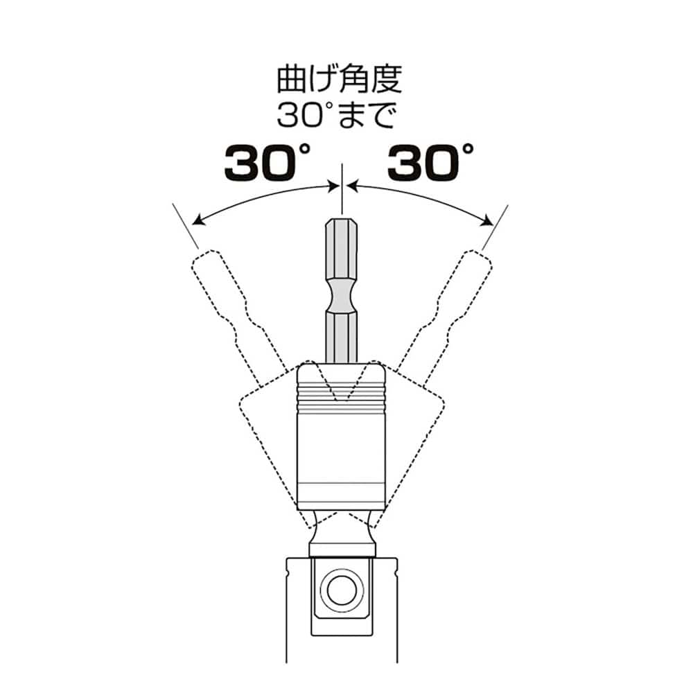 手廻しソケットが使える30度首振り兼用タイプです。18Vインパクトドライバー対応です。ハンドソケットが使えるアダプターです。角際の締め付け作業に最適です。