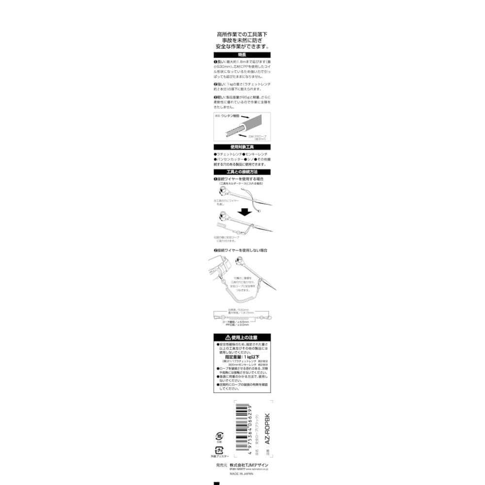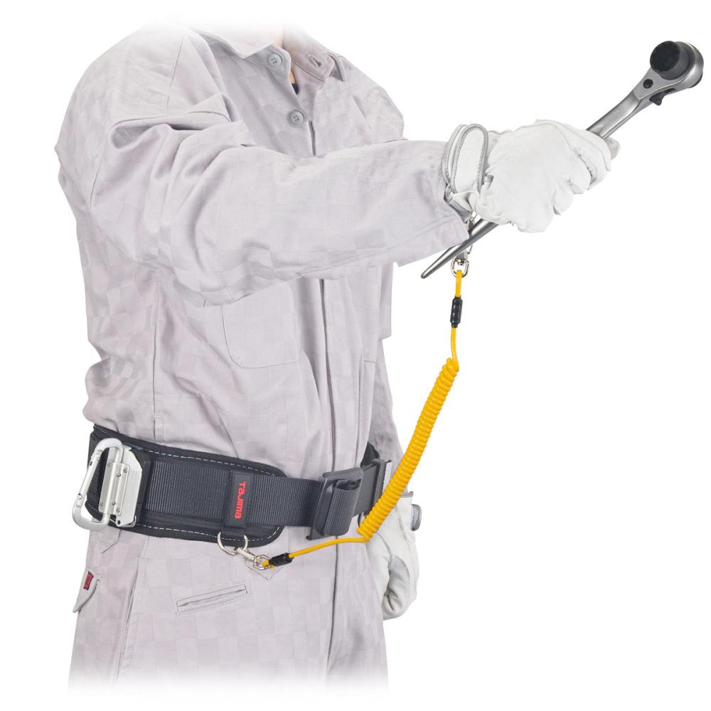 ロープの重さ80Gと軽量で柔軟性に優れており作業に支障をきたさないです。柔軟性に優れており作業に支障をきたさないです。芯材にナイロンを使用したコイル形状で、強い力で引っぱった後でも伸びたままにならないです(最大1,600mmまで伸びます)。工具接続ワイヤー付きです。使用対象工具はラチェットレンチ、モンキーレンチ、ミニカッター、シノ等です。