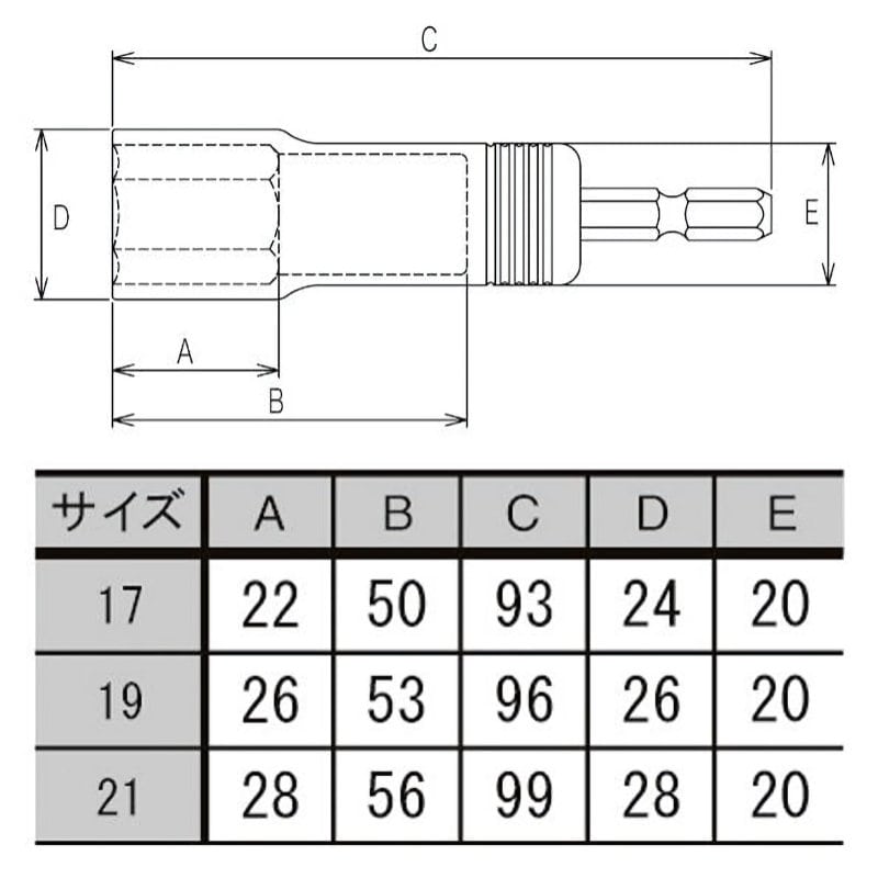 ●呼び寸法:17(12角)。●全長:93mm。●本体:クロームバナジウム鋼。
