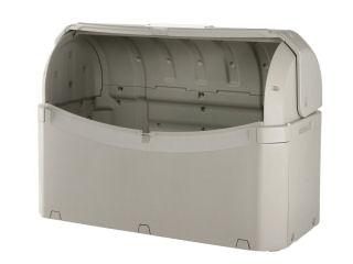 ■フタは軽くて開閉しやすいスライド式 ■耐衝撃性に優れた二重壁パネル構造 ■強風時にロープ等で固定ができる穴付き ■底面はフラットで排水口が付いていてお掃除簡単 ■分別などに便利な表示プレート付き ■鍵穴付き ※鍵は付属していません。市販の南京錠(40mm/45mm/50mm)をご使用できます。