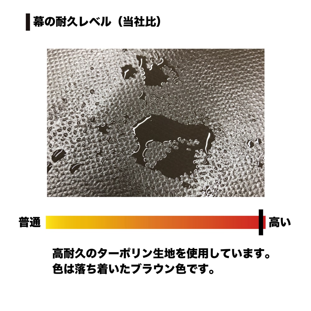 前後幕(シート)付きパイプは、錆びに強く、シートは高級塩化ビニールコーティング済み加工で、ポリエチレンより耐久性が高い。