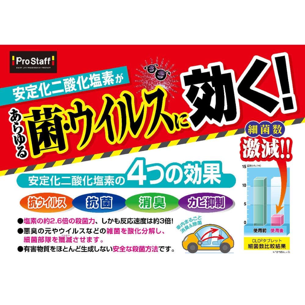 アメリカ航空宇宙局(NASA)の宇宙食の完全滅菌にも使用されているCLO2が、車内の悪臭の元になる雑菌を強力にカット。