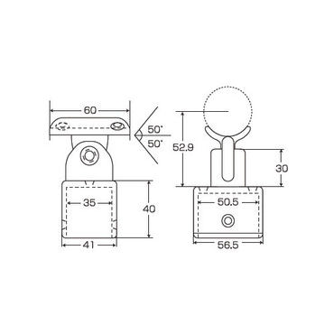 水平より最大50度の角度調整が可能な支柱手すり受けパーツ