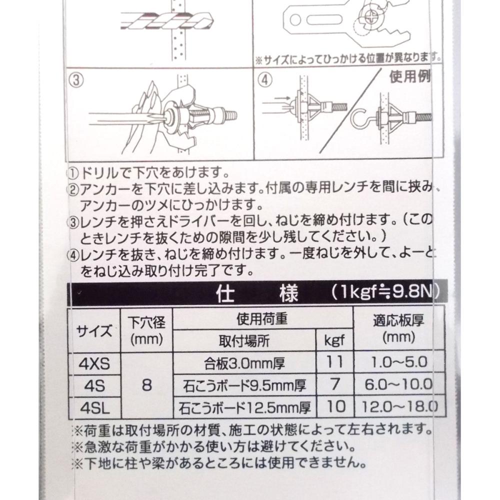 単品サイズ:アンカーと洋灯各4本入り、適用板厚12.0~18.0mm