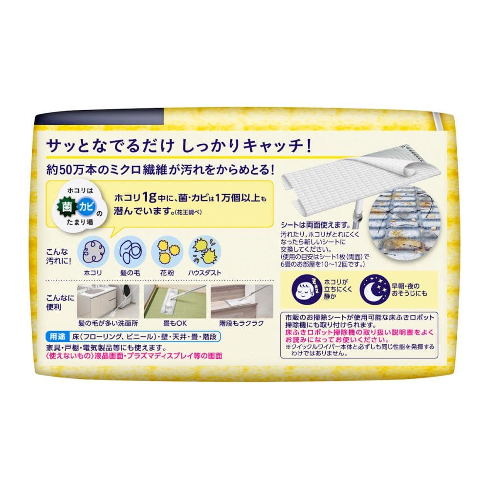 クイックルワイパーに取り付けて、フローリング・畳・ビニール床を立ったままラクにおそうじできるシートです。