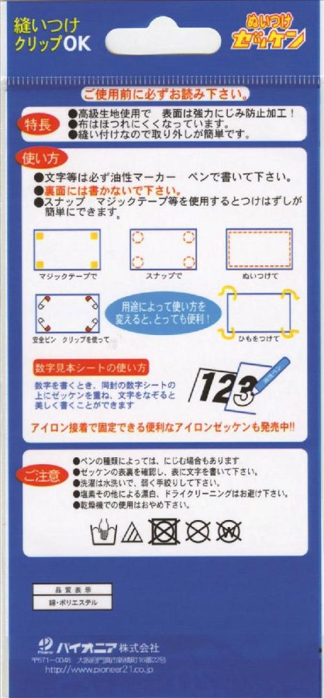 〈素材〉綿・ポリエステル 〈サイズ〉幅20cm×長さ25cm 便利な数字シート付き