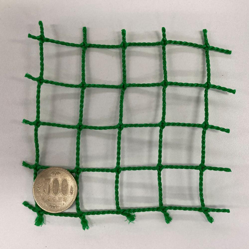 無結ネットは有結に比べて糸が太く、強度が高いです。ただし、結び目がない事でほつれやすく、周囲ロープ加工とセットでの使用をおすすめします。