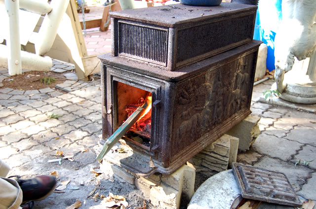 寒いので、温まりたいときは、ガーデンストーブを使います。 みんなでみかんを食べて体力回復しました。 |