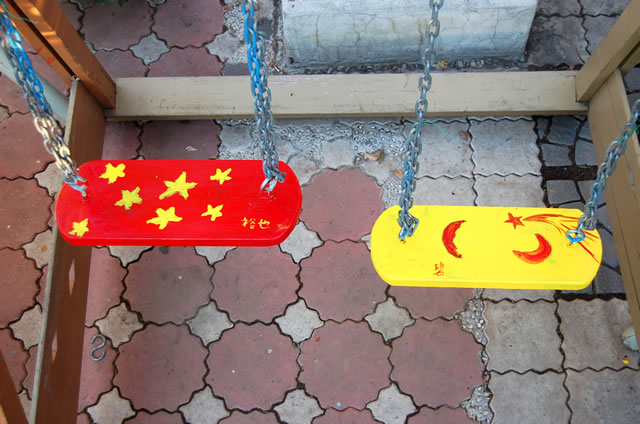 ★次は「ルネッサン荘」に昔からあるこのブランコを、新しい色にしてみました! |