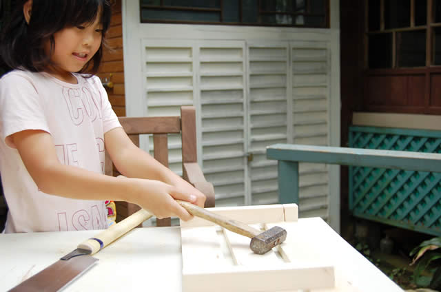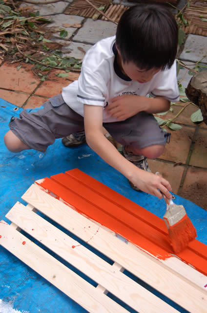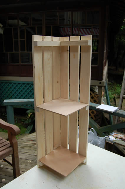 2枚あるスノコのうち、1枚を左の写真の部分をノコギリで切り取ります。 | |
