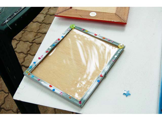 額の表面をヤスって、なるべくデコボコをなくします。 | ![]() |