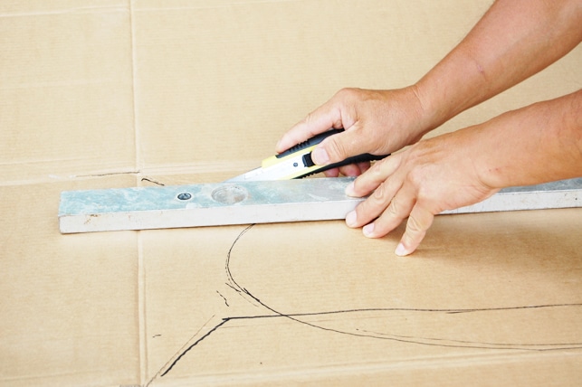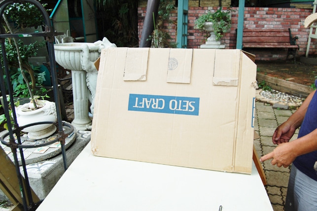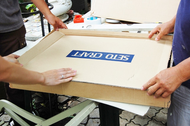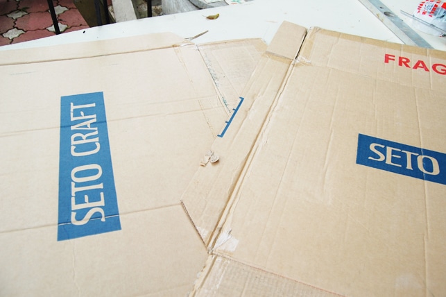 | 下に敷くダンボールも同じように"のりしろ”を作ります。 高さの部分と下に敷くダンボールをあわせます。 |