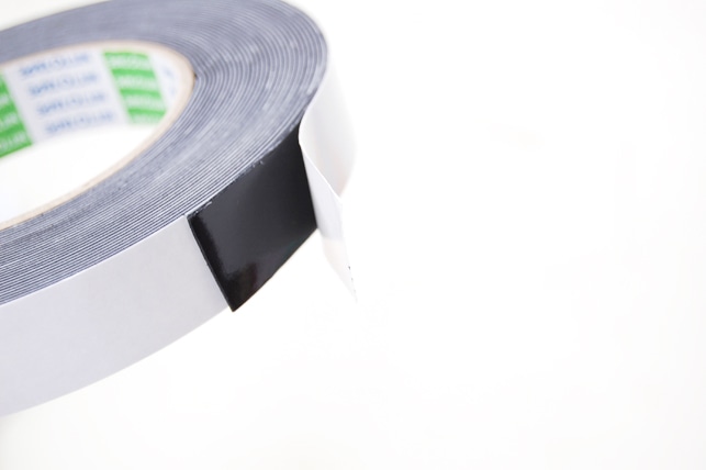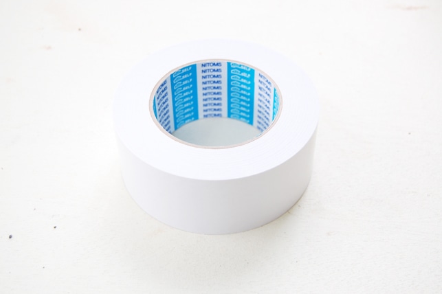 | 裏側と表面に両面テープを貼っていきます。裏側から両面テープをとめていきましょう。 形が崩れないように、きちんと表側も両面テープでとめていきます。 |