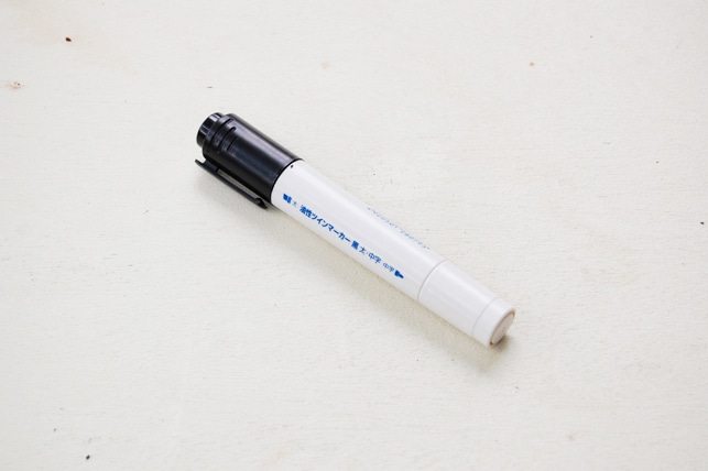 | 油性マジックで印をつけて、カッターとものさしを使用し”のりしろ”部分を作ります。 | ”のりしろ”はこんな感じです。同じものを2個作ります。 | ||