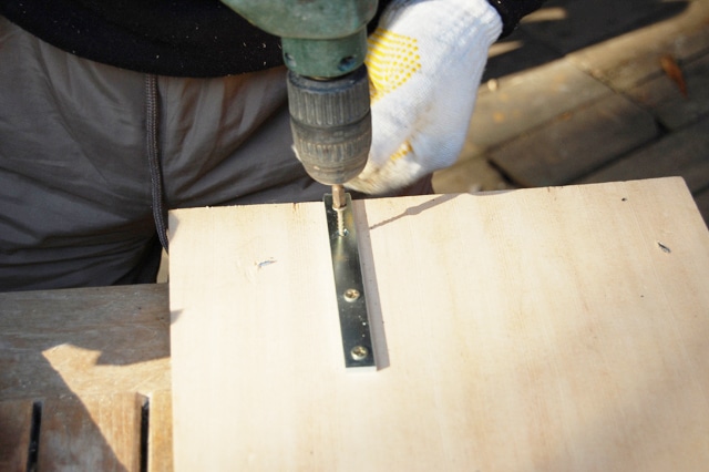 | 板を固定するために、電動ドリルでL字金具をつけます。 | |||