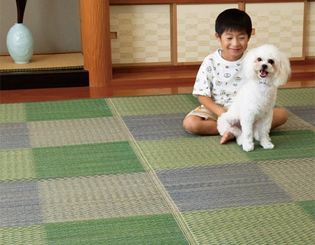 染色したい草や織り方で模様をつけたい草上敷です。自然素材ながらお部屋を華やかに演出してくれます。